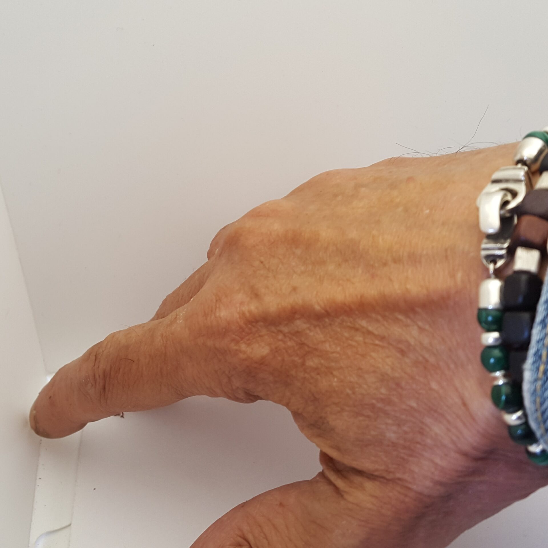 Deux façons de porter ce bracelet , en effet celle ou le bracelet est plus libre et tournera autour du poignet , ici le crochet sera plus fermé pour la sécurité , celle ou il est plus ajusté sur le poignet le crochet sera alors plus ouvert pour une accroche plus facile sans risque ultérieur de décrochage .