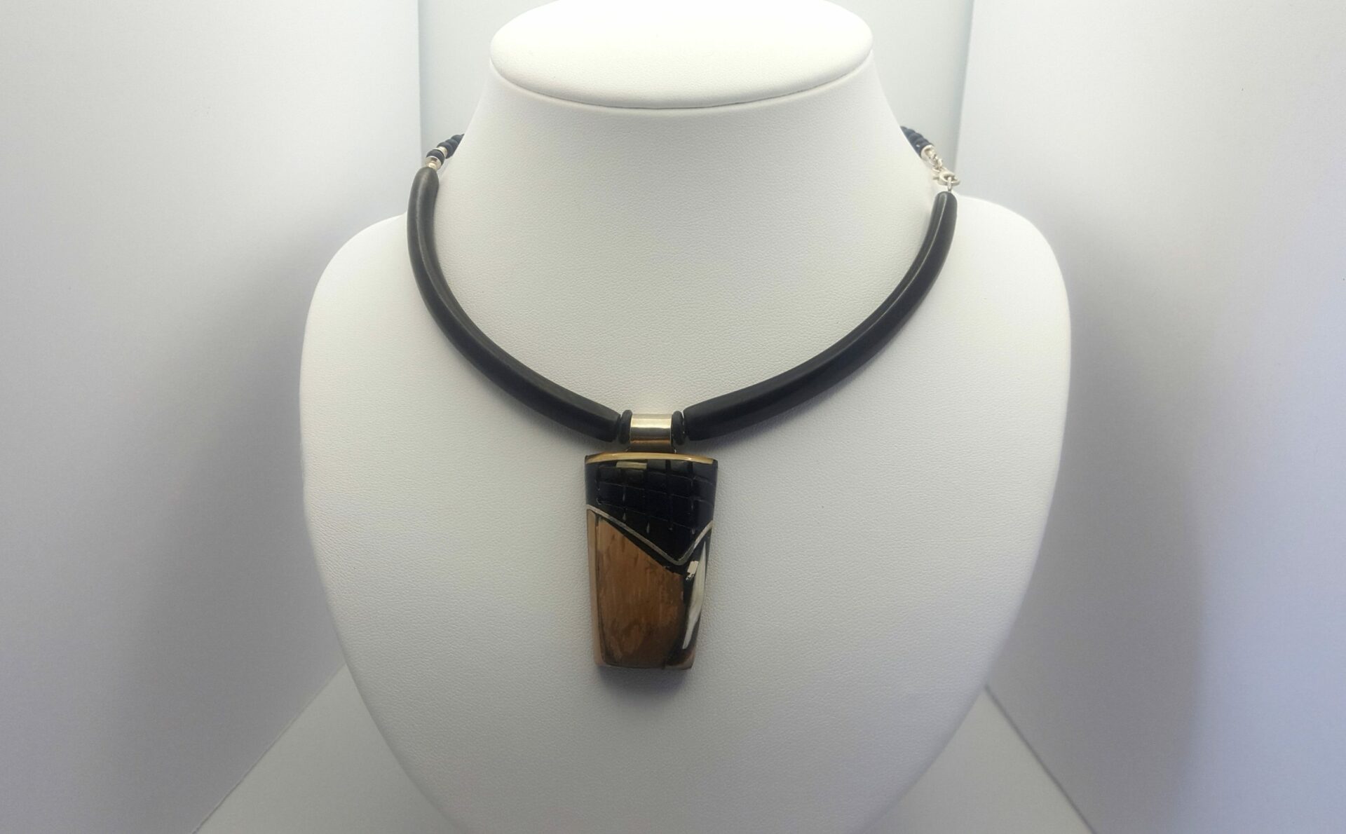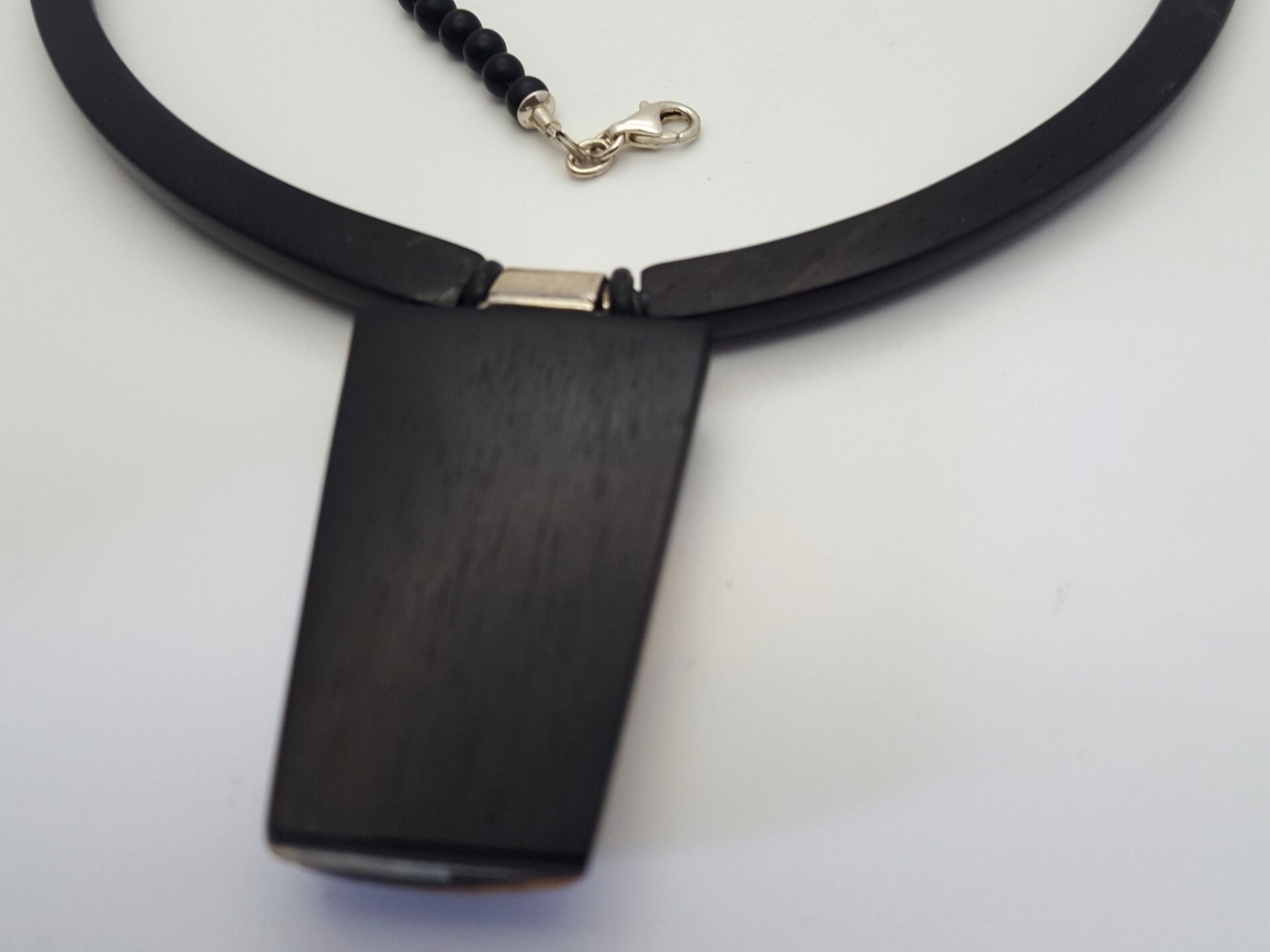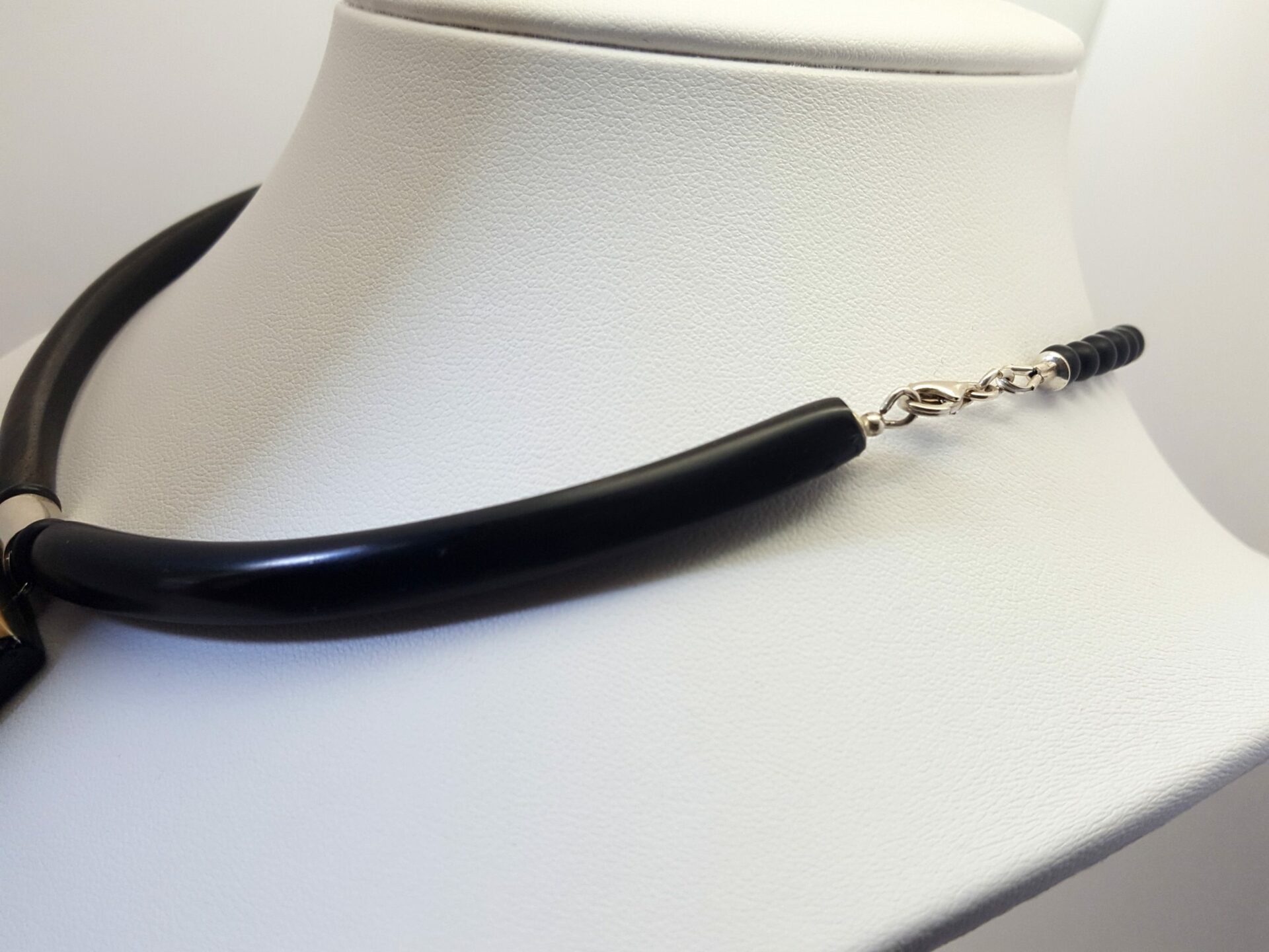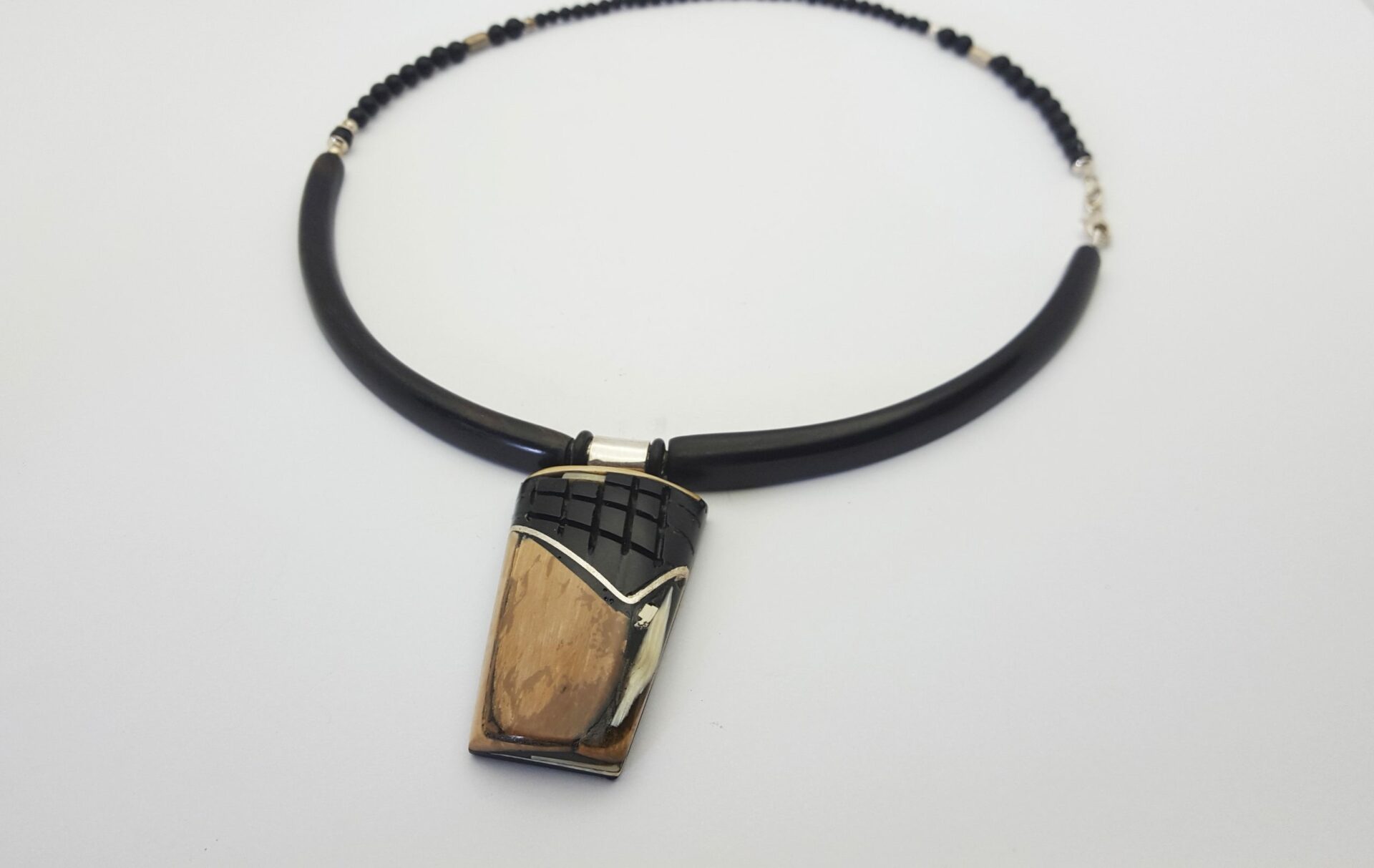 Collier totem en ivoire de mammouth ( fossile ) et ébène du Gabon .