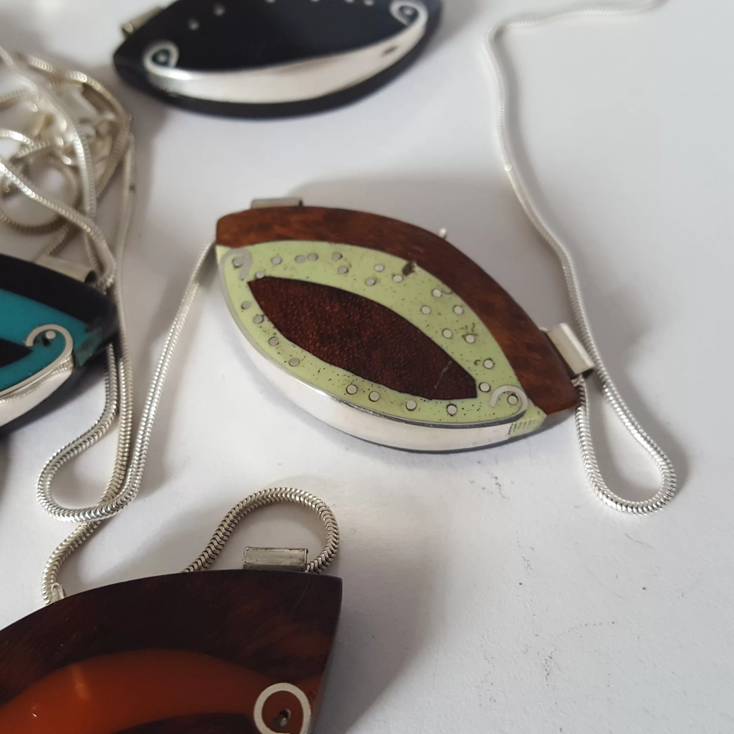 - médailon Coben rouge le charme contemporain : L’association du bois précieux, de l’époxy coloré de l’argent crée un collier à la fois moderne et intemporel. C’est un peu l’alliance de la nature et l’artisanat pour un design moderne et décidé .