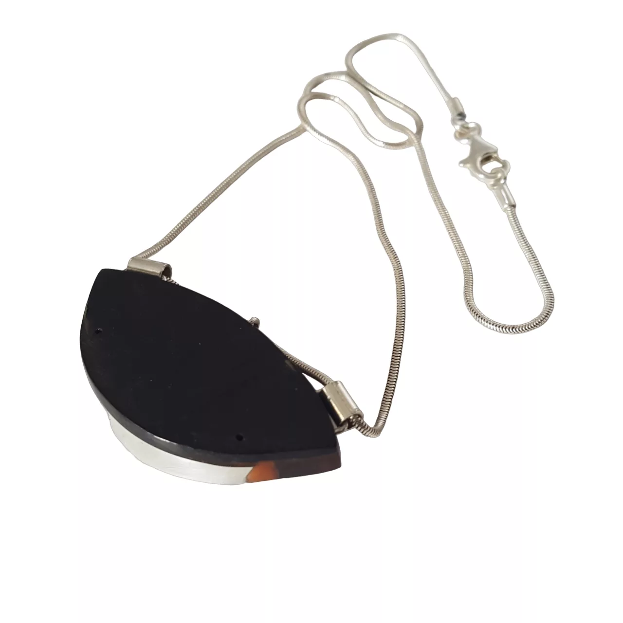 • Serti est en argent . Le médaillon dans sa partie colorée est  encadré par une monture en argent, Ce serti ajoute une touche métallique  . Il apporte ainsi un contraste au design global du collier.